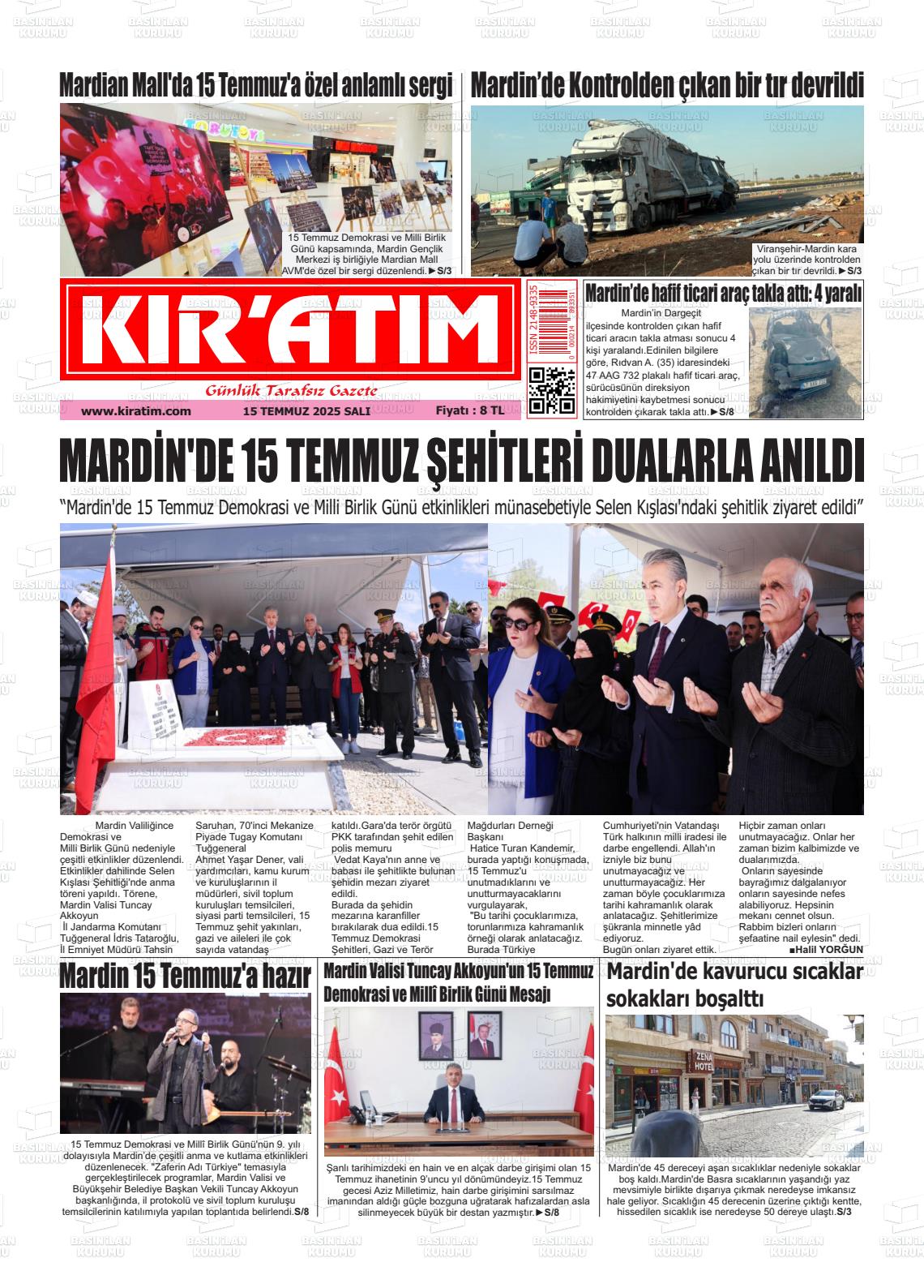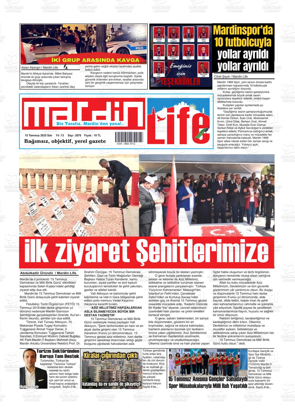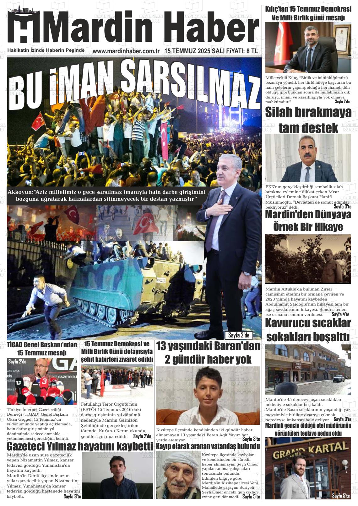 Mardİn Yerel Gazeteleri 27 Ekim 2025, Pazartesi Günü Manşeti