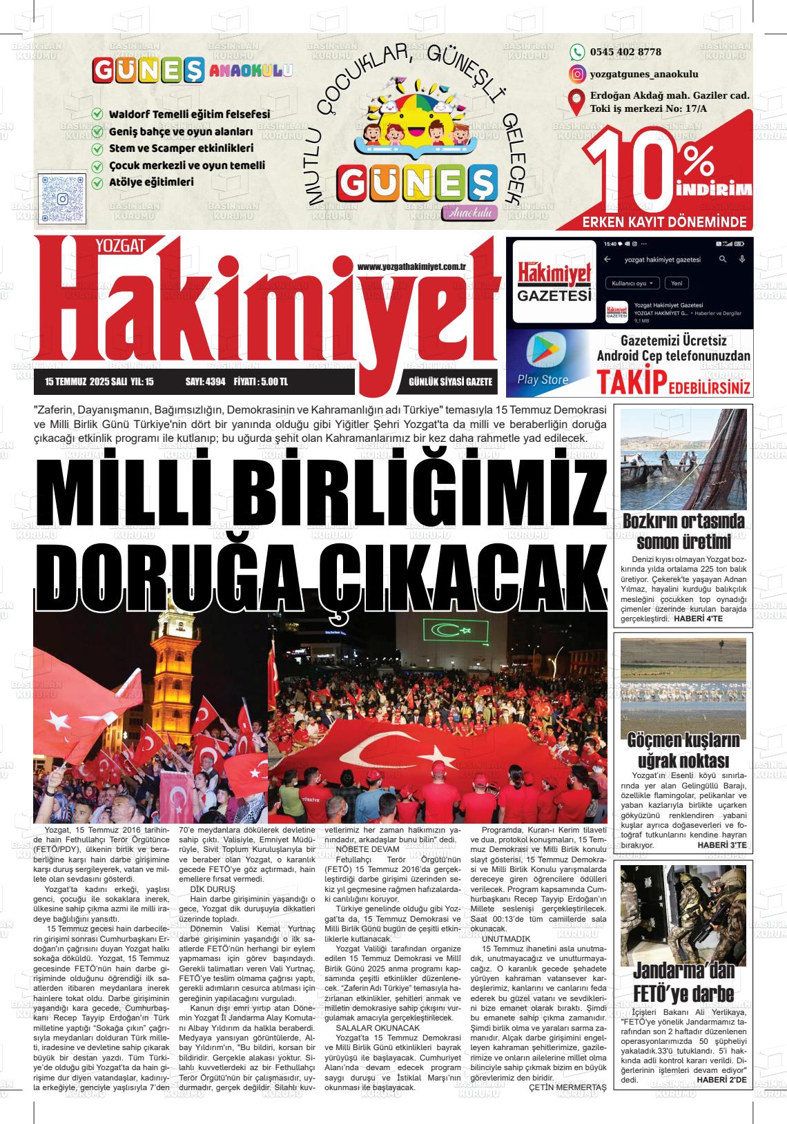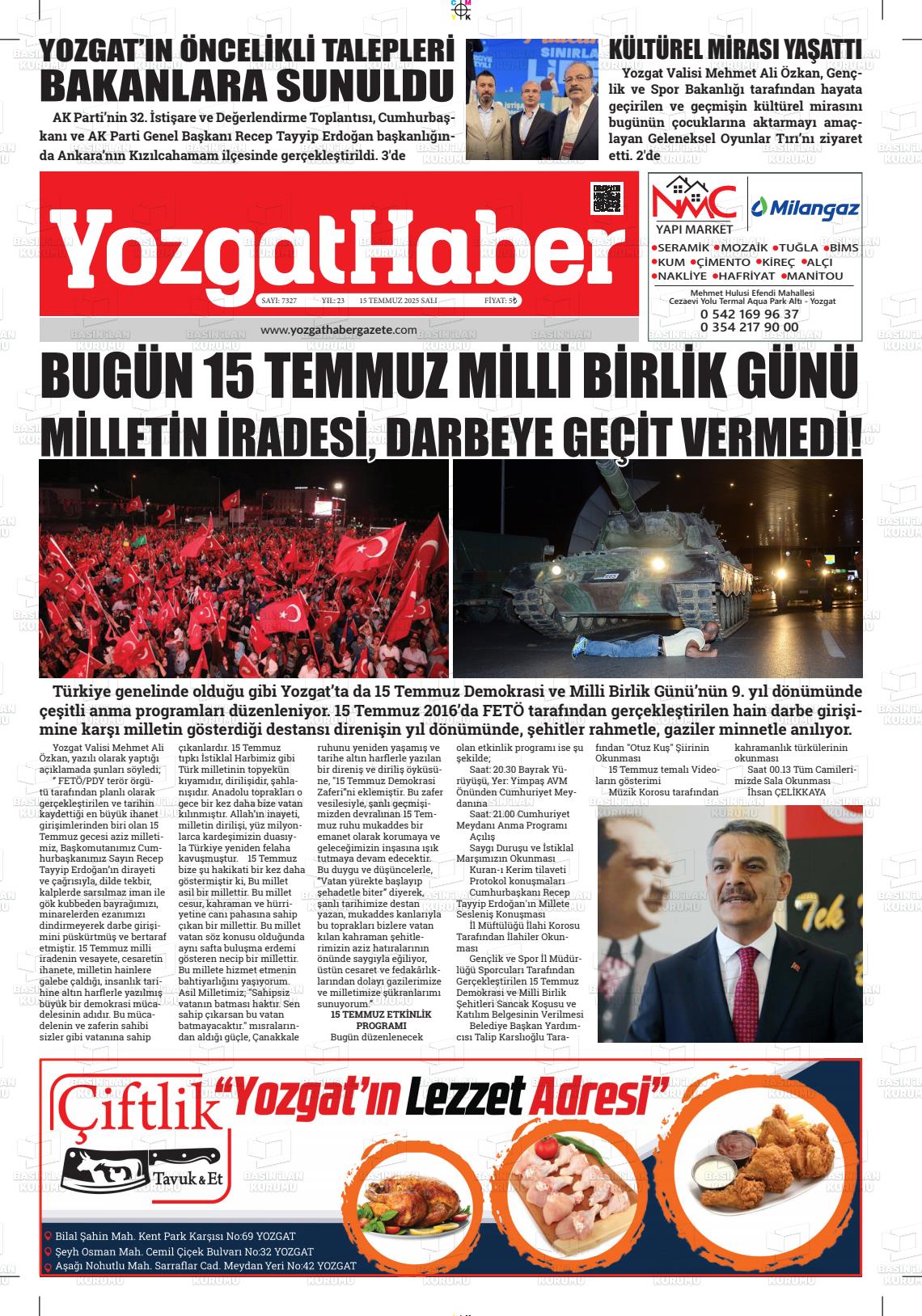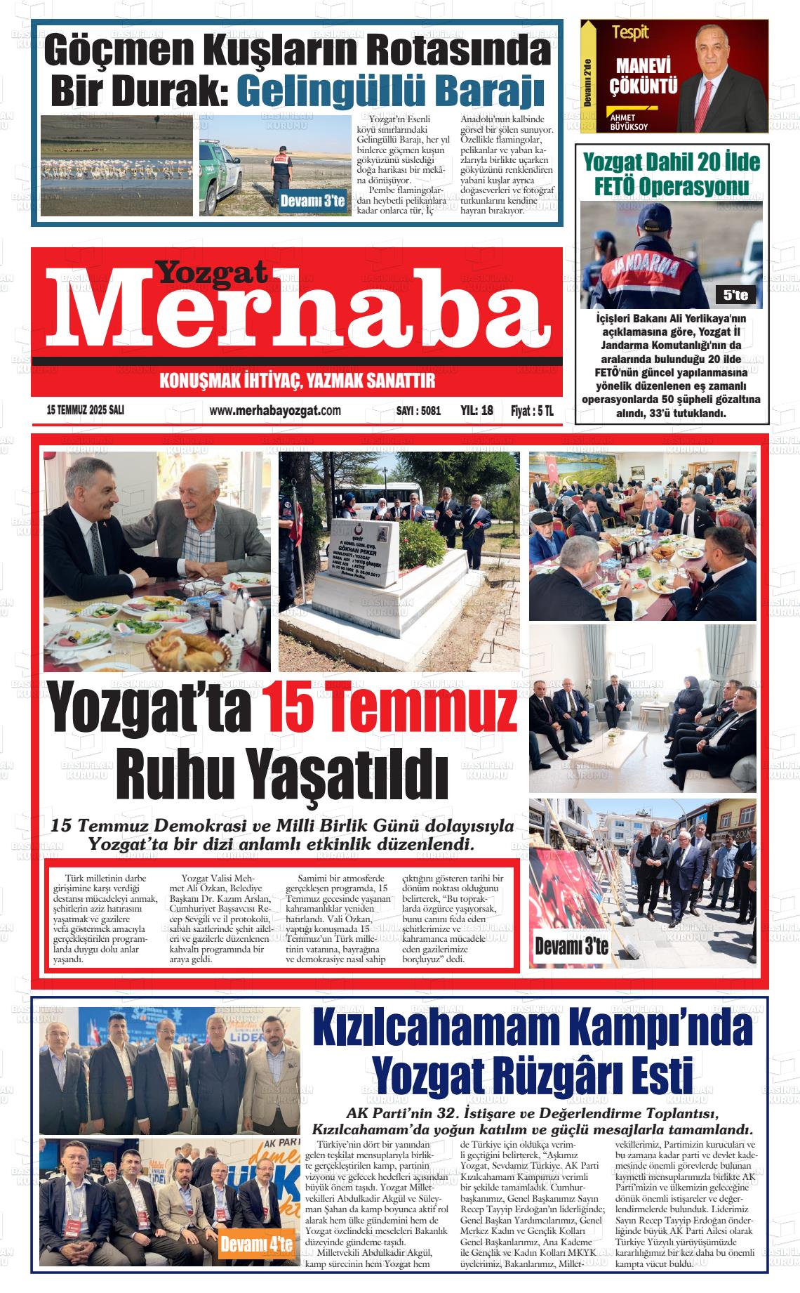 Yozgat Yerel Gazeteleri 27 Ekim 2025, Pazartesi Günü Manşeti
