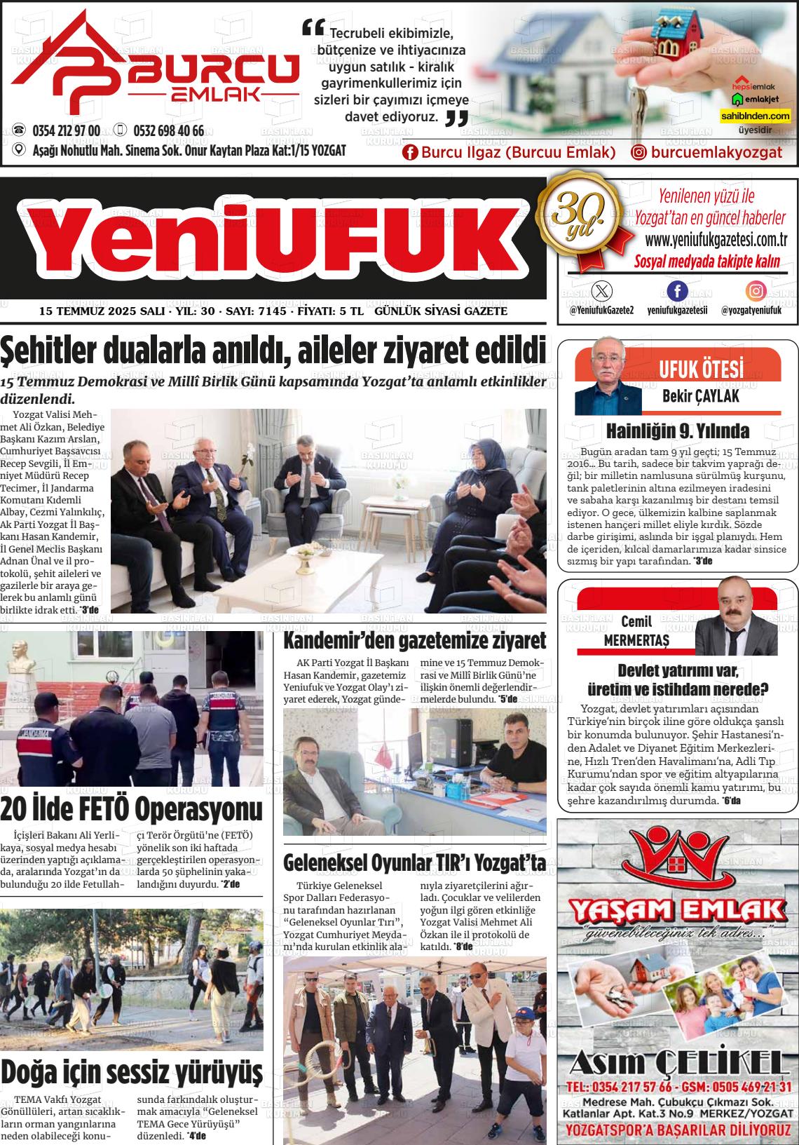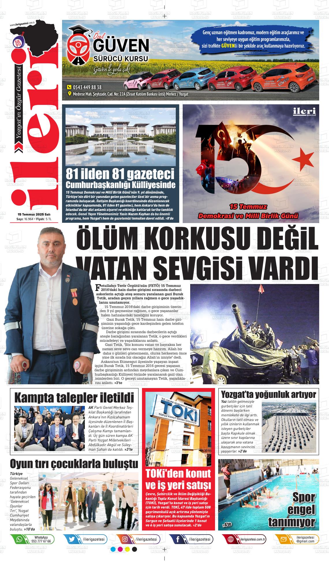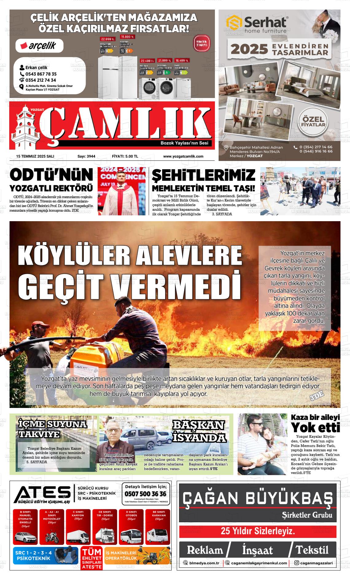 Yozgat Yerel Gazeteleri 27 Ekim 2025, Pazartesi Günü Manşeti